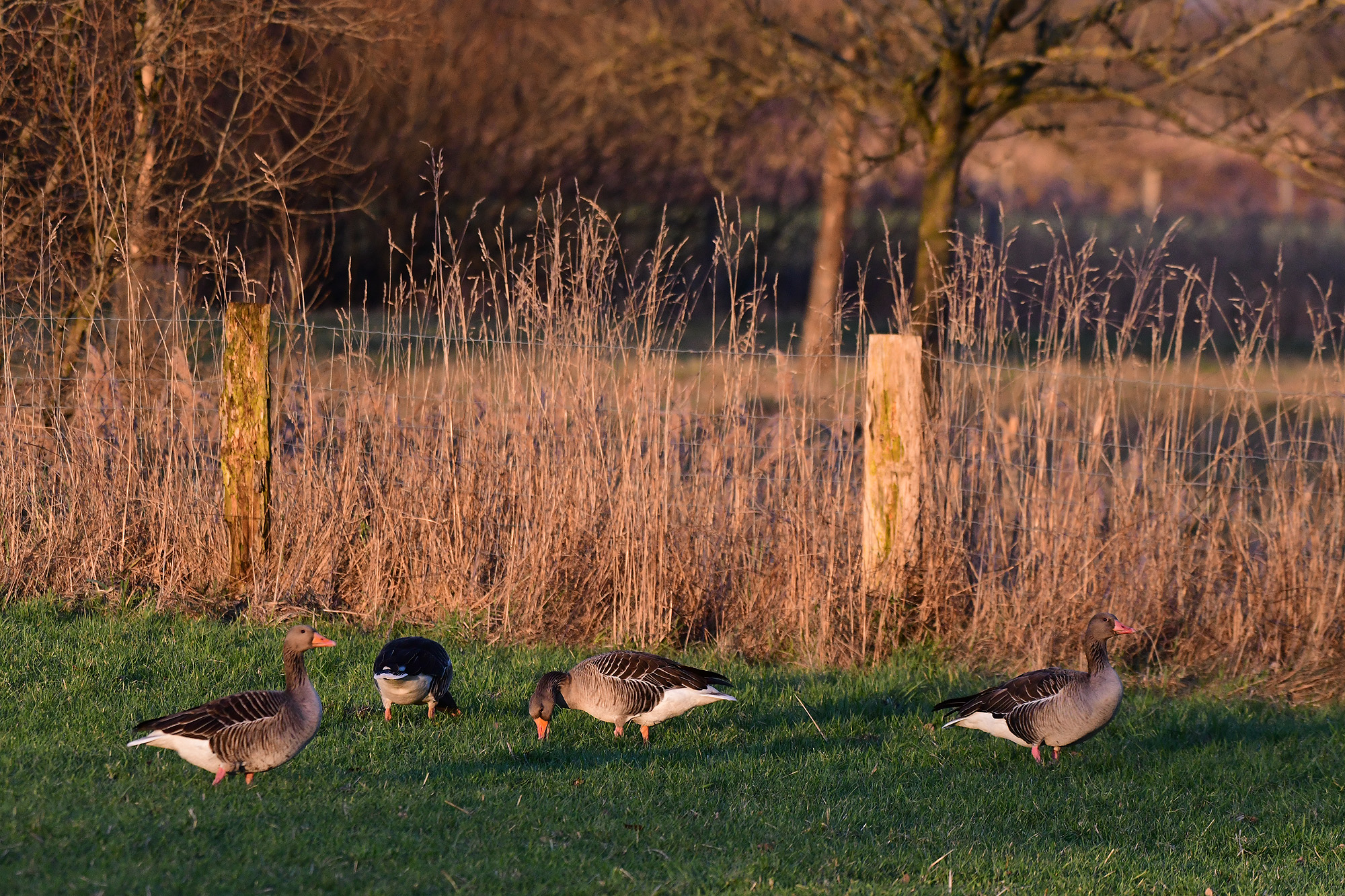 Graugänse im Sonnenlicht