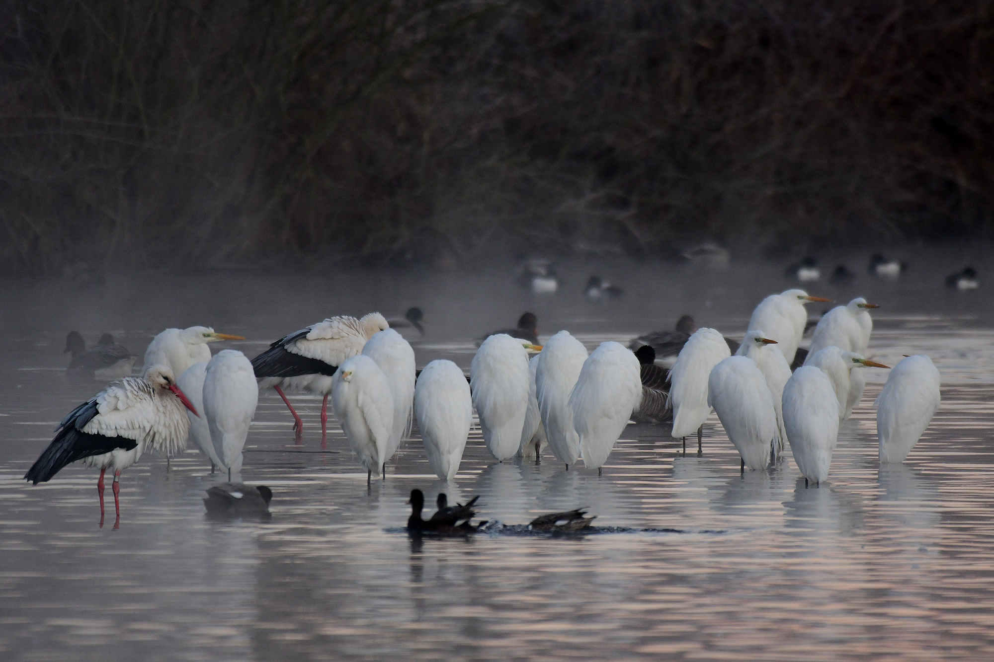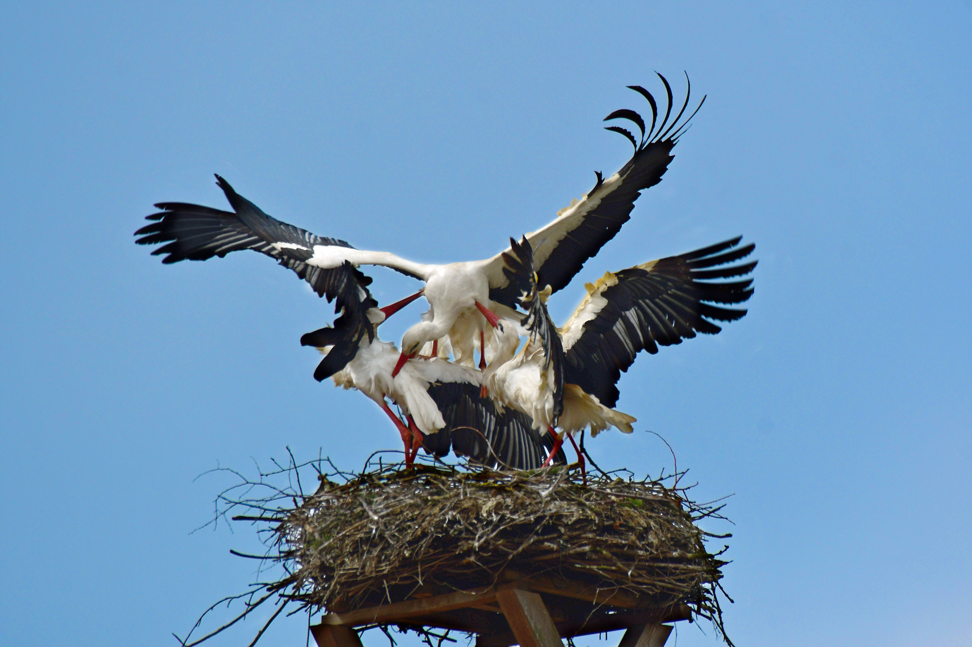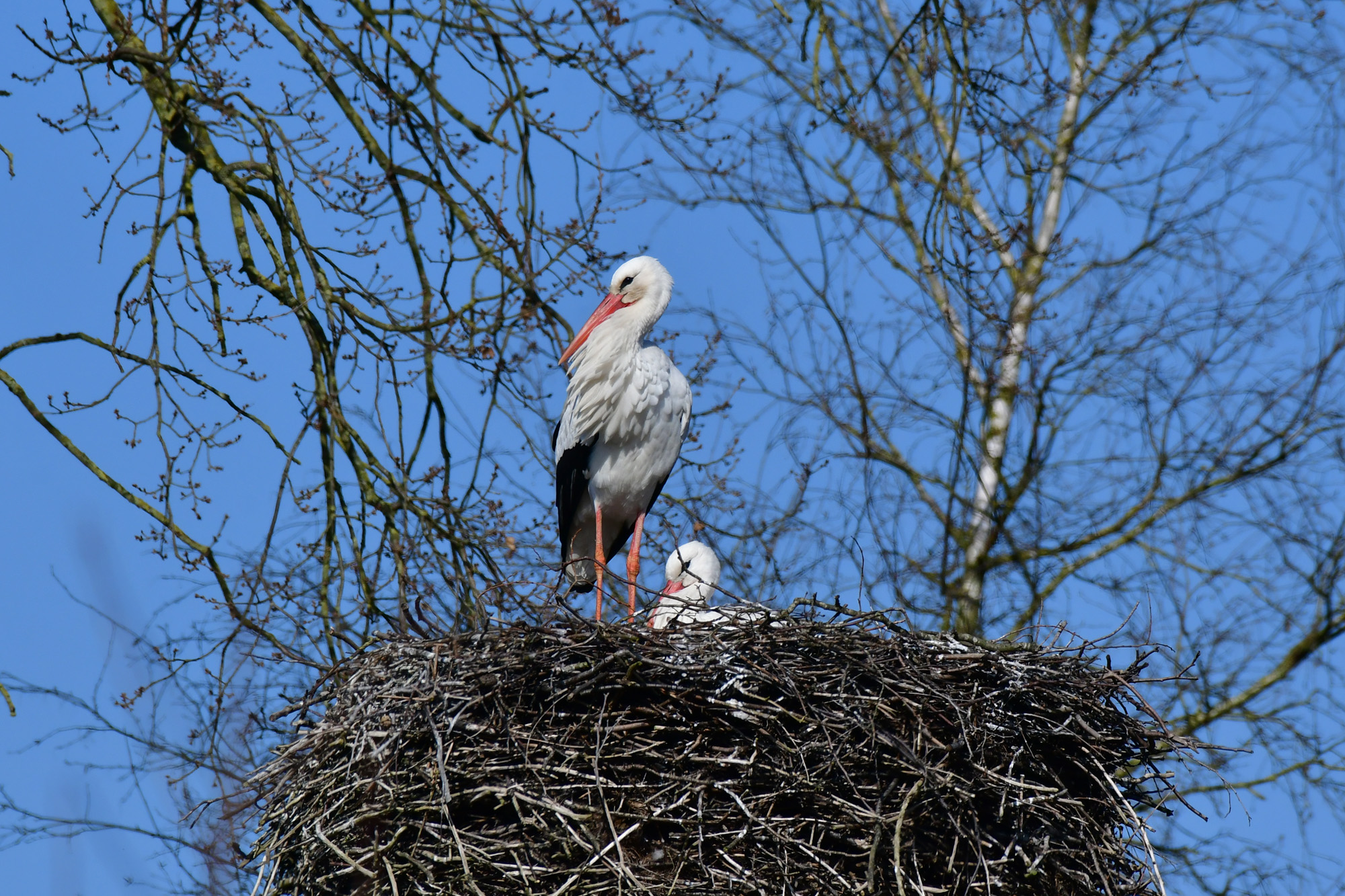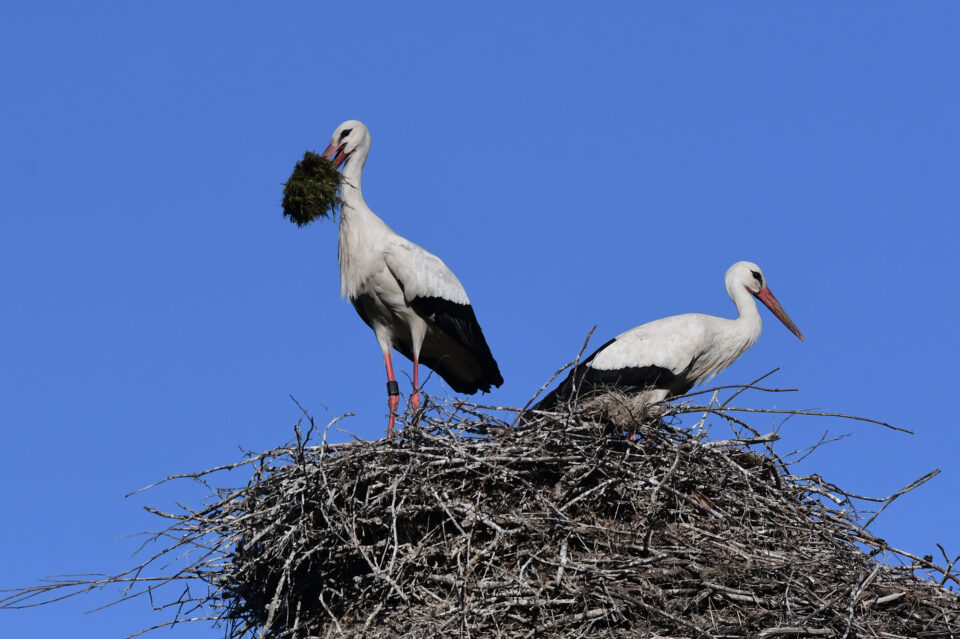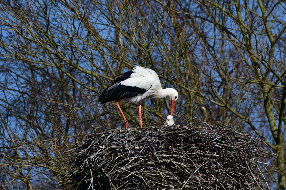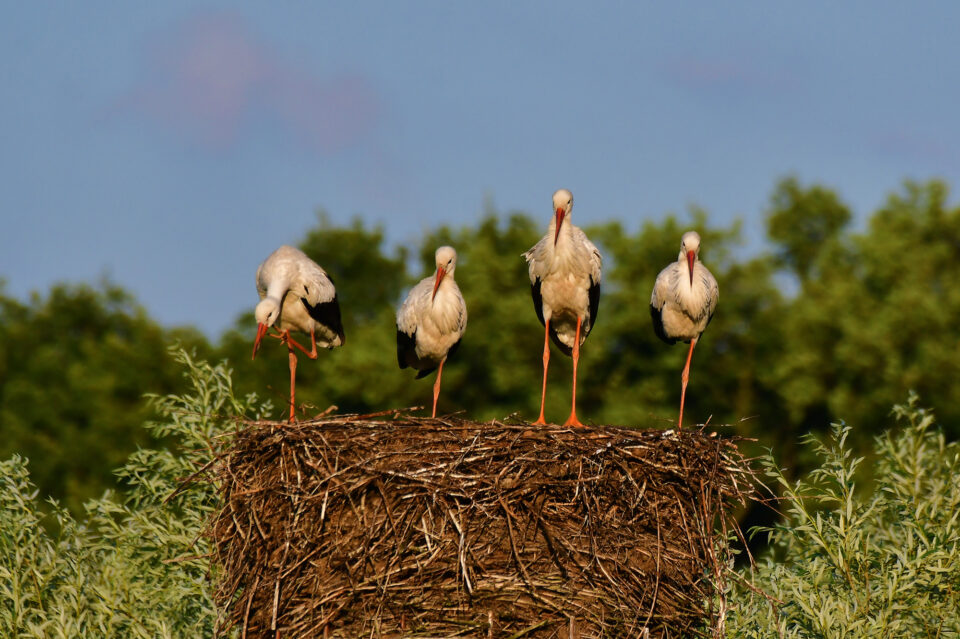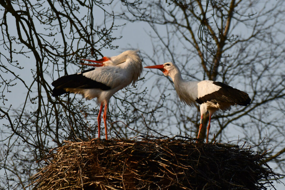 Weißstörche im Nachtquatier