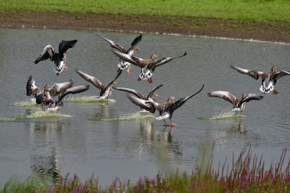 Graugänse im Flug - Lippeauen