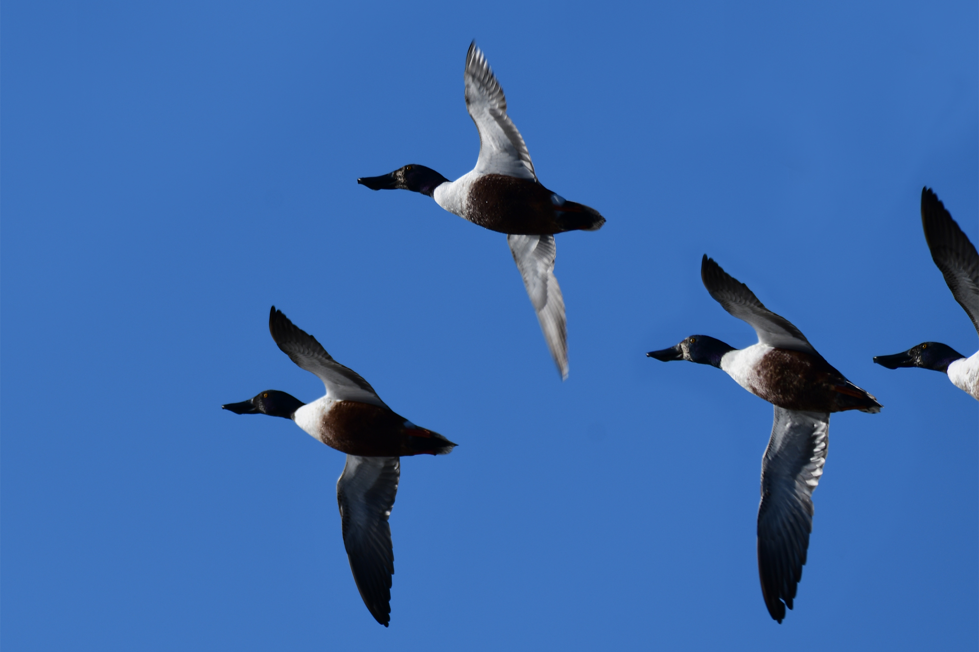 Löffelenten im Flug - Rieselfelder Münster