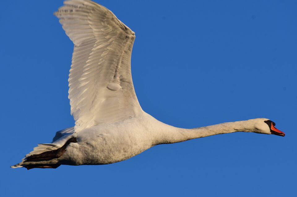 Höckerschwan im Flug