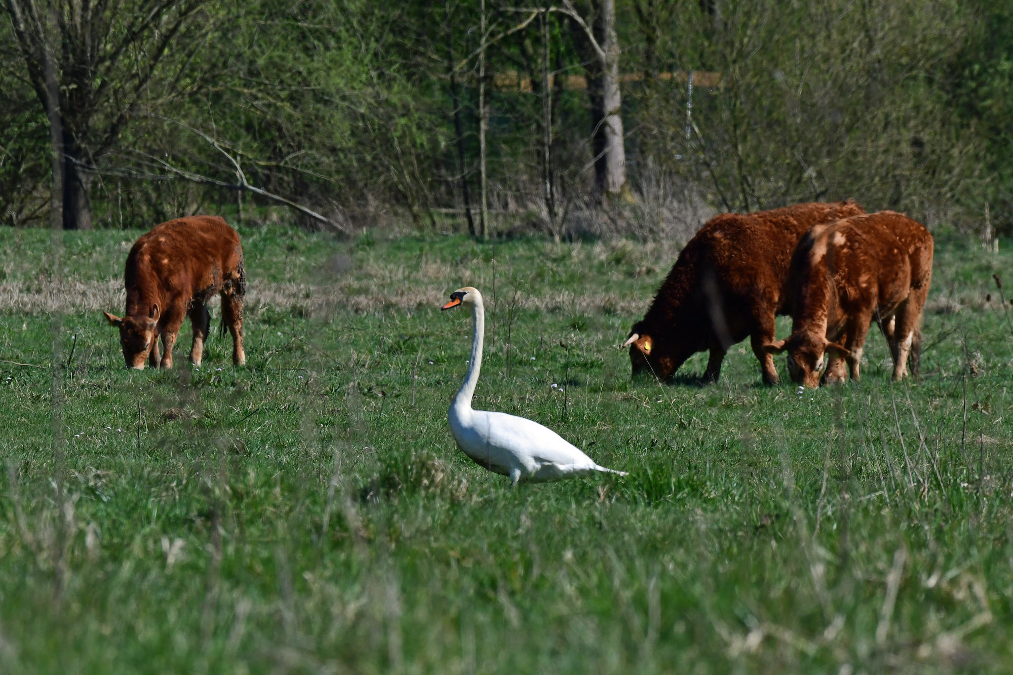 Höckerschwan unter Rindern - Hellinghauser Mersch