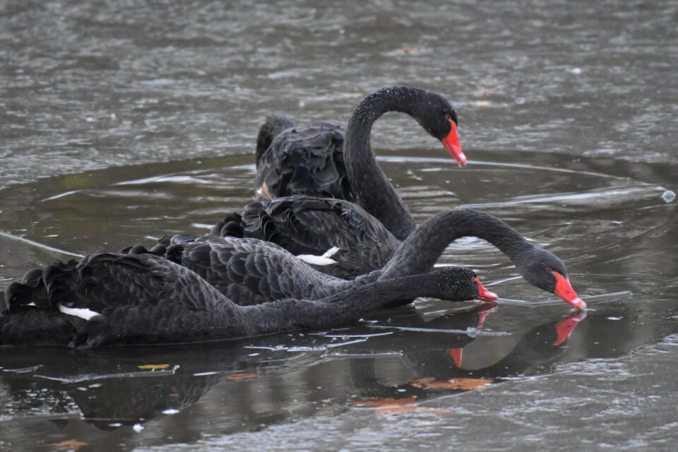 Trauerschwäne im Eis - Ostenfelde