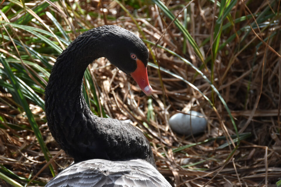 Trauerschwan mit Ei