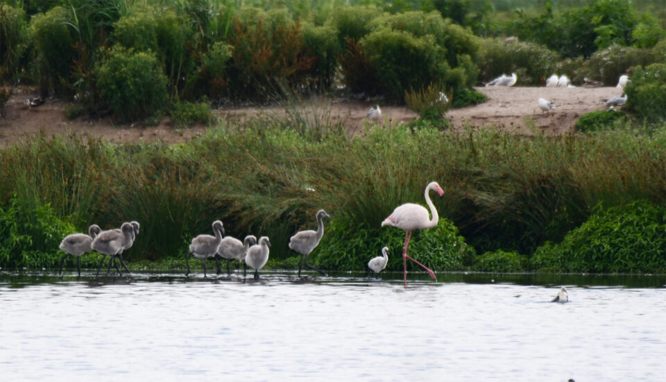 Flammingo mit Jungtieren